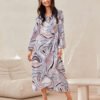 Midi dress with long sleeves. Wrap top and slightly flared bottom. It does not have a lining, with double tying at the waist.