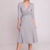 Elegant and comfortable dress made of modal fabric, which perfectly combines comfort with feminine style. The model with a fitted top and a V-neck subtly emphasizes the silhouette, and the tie at the waist allows for a perfect fit to the figure. The slightly flared bottom gives the dress lightness and freedom of movement. The classic knee length and 3/4 sleeves make it a versatile choice for various occasions. The dress is put on over the head, without unnecessary fastenings, ensuring comfort when worn. Designed and made in Poland, made of the highest quality soft, breathable and skin-friendly modal fabric.