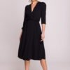 Elegant and comfortable dress made of modal fabric, which perfectly combines comfort with feminine style. The model with a fitted top and a V-neck subtly emphasizes the silhouette, and the tie at the waist allows for a perfect fit to the figure. The slightly flared bottom gives the dress lightness and freedom of movement. The classic knee-length and 3/4 sleeves make it a versatile choice for various occasions. The dress is put on over the head, without unnecessary fastenings, which ensures comfort when wearing. Designed and made in Poland, from the highest quality soft, breathable and skin-friendly modal fabric.