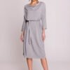 Stylish oversized dress made of high-quality modal fabric, which is soft, breathable, and extremely pleasant for the skin. The loose cut provides comfort when wearing, and the attached belt allows you to emphasize the waist according to your preferences. The water neckline gives the outfit an elegant character, subtly draping around the neck. The dress is knee-length with 3/4 sleeves, making it a versatile choice for both everyday wear and more special occasions. The model is put on over the head, without unnecessary fastenings. Designed and sewn in Poland, with attention to every detail.