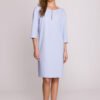Loose and comfortable dress with a loose fit, reaching just above the knee. It has 3/4 length sleeves and a neckline with a subtle cut, adorned with an elegant button. It is fastened at the back with a concealed zipper, and at the bottom there is a gentle slit, providing greater freedom of movement. The model is unlined, perfect for various occasions. The dress was designed and made in Poland from high-quality fabric, guaranteeing comfort and a stylish look.
