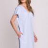 Dress in a loose fit, which provides freedom of movement and comfort throughout the day. Knee length makes it a versatile choice for many occasions. Short sleeves add lightness, perfect for warmer days. The V-neck subtly highlights the neck, giving the dress a feminine character. A hidden zipper at the back ensures easy dressing, while an additional slit at the back adds a touch of elegance. The dress is unlined, making it even more breathable and comfortable. Designed and made in Poland, guaranteeing high quality and attention to detail. A perfect choice for women who value style, comfort, and elegance in their everyday outfits.