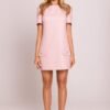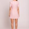 Charming mini dress in a trapeze cut, made of elegant fabric that beautifully drapes on the silhouette. The model features short puffy sleeves, giving it lightness and a romantic character. On the front, there are decorative flaps with gold heart-shaped buttons, adding a unique charm to it. The dress is fastened at the back with a concealed zipper, ensuring comfortable wear and aesthetic finish. The lack of lining makes it light and airy. The whole design and sewing process took place in Poland with attention to every detail.