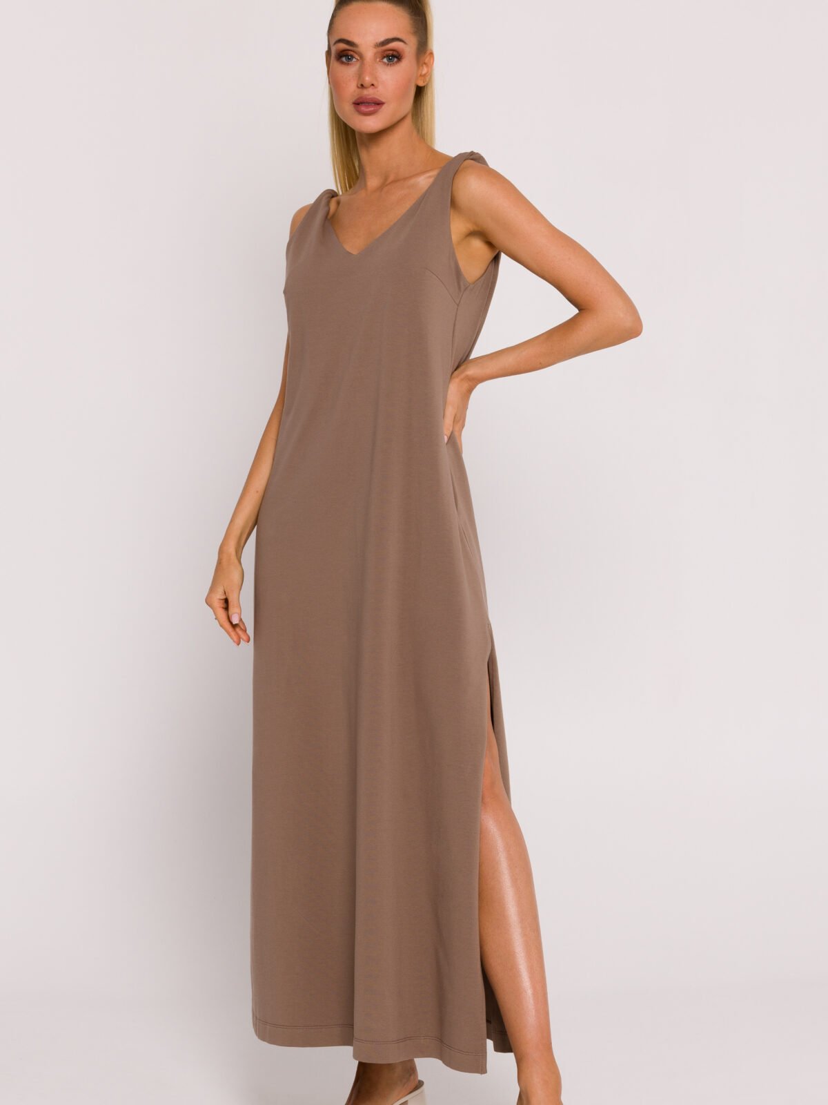 Charming mini dress made of fabric with a print, combining lightness and feminine style. The flared bottom with wedges gives it airiness and elegance, while the elbow-length sleeves provide a subtle finish. The deep V-shaped neckline beautifully highlights the neck and décolletage. Two decorative buttons at the waist add a unique accent and emphasize the silhouette. The dress is fastened at the back with a concealed zipper, guaranteeing a perfect fit. The lack of lining makes it lightweight and comfortable. Designed and sewn in Poland with attention to every detail.