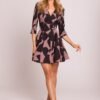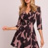Charming mini dress made of fabric with a print, combining lightness and feminine style. The flared bottom with wedges gives it airiness and elegance, while the elbow-length sleeves provide a subtle finish. The deep V-shaped neckline beautifully highlights the neck and décolletage. Two decorative buttons at the waist add a unique accent and emphasize the silhouette. The dress is fastened at the back with a concealed zipper, guaranteeing a perfect fit. The lack of lining makes it lightweight and comfortable. Designed and sewn in Poland with attention to every detail.