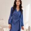 Mini dress with long sleeves. The top is wrap, and the bottom is gently flared. It does not have a lining, it is fastened with a double tie at the waist.
