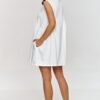 This trapeze dress is a perfect choice for women who value comfort and style. It is designed in a loose fit, which ensures full freedom of movement. The trapeze cut allows to hide wide hips or fuller thighs, giving the silhouette a more balanced look. The dress has a sweetheart neckline, which emphasizes its subtlety and femininity. The mini length is a great way to show off your legs while highlighting lightness and sensuality. Made of cotton and pleasant to the touch material, which is breathable and airy, making it a perfect choice for warmer days. The trapeze dress stands out for its versatility and timeless style. Perfect for walks with light flat sandals, for meetings with friends with comfortable ballerinas, or for evening outings paired with elegant heels and delicate jewelry.