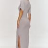 This maxi dress is a perfect choice for a wedding, dinner, party or meeting with friends. Its unique cut with gathering along the center perfectly emphasizes the silhouette, giving it slenderness and elegance. Loose sleeves make the dress a combination of classic style and modern comfort. The elegant V-neck visually lengthens the neck, adding delicacy and a sensual character to the outfit. This neckline cut makes the dress very feminine and elegant at the same time. The subtle slit on the side adds not only dynamism but also a hint of coquettishness. The model is made of elastic material, which, thanks to its flexibility, beautifully flows over the body, fitting the silhouette. Our elegant maxi dress, thanks to the combination of elegance, comfort, and femininity, will become a perfect element of your wardrobe for special occasions. Just add elegant sandals or heels to create a unique styling.