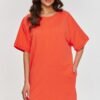 A dress with short sleeves is a perfect choice for women who appreciate simplicity and class in their everyday stylizations. Its loose cut with light details, such as front seams, give it a modern yet universal character. The wide sleeve reaching to the elbow introduces a casual, casual accent, while remaining elegant. The dress neckline has a classic, round shape that subtly highlights the neck, maintaining the simplicity of the outfit. Meanwhile, the pockets on the sides are a practical element that adds functionality, while maintaining its minimalist look. The dress is knee-length, which perfectly emphasizes the legs, creating a fresh, light look. The dress fits many stylizations and is a perfect background for fashionable accessories. You can pair it with elegant accessories for an evening out or with casual ones for everyday wear. Thanks to its simple yet striking cut, it is an ideal everyday base for work, meetings with friends, or weekend getaways. With its help, you can create a fresh, elegant stylization that you can easily adjust to your own style.
