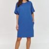 A dress with short sleeves is a perfect choice for women who appreciate simplicity and class in their everyday stylizations. Its loose cut with light details, such as stitching on the front, give it a modern yet universal character. The wide sleeve reaching to the elbow introduces a casual accent while remaining elegant. The dress has a classic, round neckline that subtly highlights the neck, maintaining the simplicity of the outfit. Meanwhile, the pockets on the sides are a practical element that adds functionality while maintaining its minimalist look. The length of the dress is just above the knee, which perfectly accentuates the legs, creating a fresh, light look. The dress is suitable for many stylizations and is a perfect background for fashionable accessories. You can pair it with elegant accessories for an evening out or with casual ones for everyday wear. Thanks to its simple yet striking cut, it is an ideal daily base for work, meetings with friends, or a weekend getaway. With its help, you can create a fresh, elegant style that you can easily adjust to your own taste.