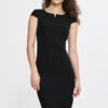 Elegant, fitted dress with a classic fit cut. The round neckline with a subtle slit adds a refined character to it. The short cap sleeves delicately cover the shoulders, emphasizing the feminine silhouette. The pencil bottom beautifully complements the figure, and the knee-length gives it timeless elegance. The dress is fastened at the back, in the middle, with a practical zipper, ensuring comfort and perfect fit. An excellent choice for special occasions and elegant stylings.