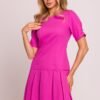 Mini dress made of high-quality cotton fabric, providing comfort and breathability. The style with a lowered waist subtly accentuates the silhouette, while the pleats at the bottom give it lightness and elegance. Short sleeves adorned with darts and decorative buttons add a unique character to the whole. The dress fastens with a hidden zipper at the back, without lining, making it lightweight and comfortable to wear. Designed and sewn in Poland with attention to every detail.