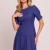 Mini dress made of high-quality cotton fabric, providing comfort and breathability. The design with a lowered waist subtly emphasizes the silhouette, while the pleats at the bottom add lightness and elegance. Short sleeves decorated with seams and decorative buttons add a unique character to the whole. The dress is fastened with a concealed zipper at the back, without a lining, making it light and pleasant to wear. Designed and made in Poland with attention to every detail.