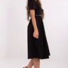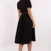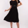 Classic and feminine dress with a flared cut is a perfect choice for women who appreciate elegance and comfort. Made of soft, stretchy material (polyester with a touch of elastane), it beautifully drapes on the silhouette and provides freedom of movement. A midi-length model with short sleeves and a round neckline will work well both at work and during formal outings. Subtle ruching on the shoulders and waist adds delicate volume to the whole and emphasizes the waist, while the fastened belt further accentuates the feminine silhouette. Smooth material combined with a simple line and a zip closure at the back creates a timeless look that pairs well with elegant accessories.
