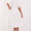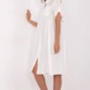 Flared shirt dress in midi length, created with daily comfort and style in mind. Made of a lightweight blend of viscose and nylon, it provides breathability and subtle shine. Smooth fabric emphasizes its versatile character, perfect for both work and casual meetings. The dress has a classic collar, short sleeves, and button fastening. Decorative pleats add feminine charm, and a practical chest pocket breaks the simple form. An excellent choice for any occasion when you want to look casual yet elegant.