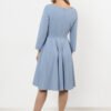 A classic with a touch of modernity, this dress is the perfect choice for many occasions. The flared cut accentuates the silhouette, providing comfort and freedom. The boat neckline adds elegance, while the decorative buttons at the front introduce a subtle accent. The concealed zip at the back ensures comfort and a perfect fit. It is ideal for both everyday wear and more formal outings.