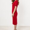 This dress is the perfect choice for many occasions. The fitted cut beautifully highlights the silhouette, while the short sleeves and boat neckline with a subtle slit add elegance. The concealed zipper provides comfort while wearing, and its versatile style makes it easy to dress up for both everyday wear and elegant outings.