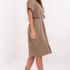 A classic muslin dress with a simple cut is an ideal choice for everyday wear and work. Made of breathable, 100% cotton, it ensures comfort throughout the day, even on warmer days. The smooth fabric and understated design make the dress fit perfectly into a minimalist yet elegant style. The model features short sleeves, a classic collar, and button closure along the entire length. There is a fastened belt at the waist that accentuates the silhouette and allows you to adjust the fit according to your preferences. The knee-length makes it a versatile choice for the office, meetings, or everyday outings. This timeless proposal is for women who appreciate simplicity, comfort, and natural materials in a stylish edition.