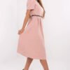 Classic and feminine dress with a flared cut is a perfect choice for women who appreciate elegance and comfort. Made of soft, stretchy material (polyester with a touch of elastane), it beautifully drapes on the silhouette and provides freedom of movement. The midi length model with short sleeves and a round neckline will work well both at work and during formal outings. Subtle ruching on the shoulders and at the waist add delicate volume to the whole and emphasize the waist, while the fastened belt further accentuates the feminine silhouette. Smooth material combined with a simple line and a zipper closure at the back creates a timeless look that goes well with elegant accessories.