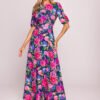 The dress is made of delicate fabric with a matte finish, decorated with a colorful, flowery pattern that adds freshness and girlish charm. The model combines a fitted top with a flared bottom, which looks spectacular thanks to the high slit, emphasizing the legs and giving the silhouette lightness. The front neckline is round and covered, while the back is adorned with a subtle cutout, adding a sensual character to the whole. Short, puffy, ruched sleeves with cuffs complete the romantic style of the dress. The model has a concealed zipper at the back and covered buttons, which provide an elegant and practical closure. The upper part of the dress is partially lined (95% polyester, 5% elastane), which guarantees comfort and perfect material arrangement. Designed and made in Poland, with attention to detail and feminine style.