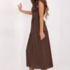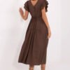 Stylish and feminine summer dress with a flared cut is a perfect choice for everyday wear and work. Made of a light and breathable blend of viscose and nylon, it ensures comfort even on the hottest days. The midi-length model beautifully shapes the silhouette, and the waist tie allows for subtle waist accentuation. The smooth fabric gives the dress a universal, elegant character, making it easy to match with different styles. The short ruffled sleeves add lightness and romantic charm, while the V-neck visually slims the neck and adds a feminine touch. The dress is buttoned at the back, which is a stylish detail and makes it easy to put on. It is an ideal choice for women who appreciate comfort, elegance, and functionality, both in daily hustle and during more peaceful summer days.