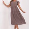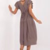 Stylish and feminine summer dress with a flared cut is a perfect choice for everyday wear and for work. Made of a light and breathable blend of viscose and nylon, it ensures comfort even on the warmest days. The midi length model beautifully shapes the silhouette, and the tie at the waist allows for subtle waist accentuation. The smooth fabric gives the dress a versatile, elegant character, making it easy to match with various stylizations. The short ruffled sleeves add lightness and romantic charm, while the sweetheart neckline visually slims the neck and adds feminine charm. The dress is buttoned at the back, which is a stylish detail and makes it easy to put on. It is an ideal choice for women who appreciate comfort, elegance, and functionality, both in their daily hustle and bustle and during quieter summer days.
