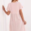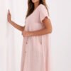 A light, flared summer dress is a perfect choice for everyday stylizations. Made of natural cotton, it provides breathability and comfort even on hot days. The varied texture of the material adds character and subtle originality to it. The cut below the bust gently emphasizes the silhouette and gives the dress a girlish charm. Short sleeves and a round neckline create a classic, comfortable finish, perfect for everyday wear. The knee-length makes the dress both practical and feminine. The model is adorned with a row of decorative buttons at the front, which are a stylish detail accentuating the slightly retro character of the dress. An additional advantage are the discreet, yet very functional, inset pockets. It is the perfect summer dress comfortable, stylish, and full of charm, great for both a walk and everyday activities.