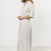 Linen shirtdress in delicate stripes. This dress is the perfect combination of elegance and comfort. Made of linen, it provides breathability and freedom of movement. The loose, trapeze cut can be accentuated with a belt at the waist, and the stand-up collar with a collar and button closure add a stylish character. Excellent for many occasions from everyday to more elegant ones. Carefully made Polish production ensures durability and comfort of wearing.
