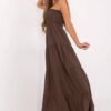 A summer maxi dress with a flared cut is the perfect choice for warm, everyday days. Made of a natural blend of viscose and linen, it provides breathability, lightness, and comfort throughout the day. The sleeveless model with a rectangular neckline looks feminine and stylish. The top of the dress is decorated with elastic shirring with rubber bands, which perfectly adjust to the silhouette and emphasize the bust line. The bottom part is finished with a wide ruffle, giving the dress lightness and a romantic character. The lack of fastening makes the model easy to put on and comfortable to wear. It is a perfect choice for summer walks, meetings with friends or trips, just add sandals and a wicker bag to create a charming outfit.