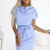 Stylish, feminine and comfortable, this blue dress from Numoco is a must-have in every woman’s wardrobe! Made in Poland from flexible, high-quality material, it beautifully complements the silhouette, emphasizing the figure. A water-type neckline, short sleeves, and a waist tie create an elegant, yet modern look.