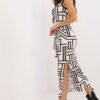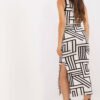 Everyday midi pencil dress is a stylish and comfortable choice for every day. Made of soft, elastic blend of viscose and elastane, it perfectly fits the silhouette, providing comfort while wearing. Sleeveless model with a feminine sweetheart neckline subtly emphasizes the neckline and shoulders. The geometric pattern adds a modern character, and the attached waist tie belt accentuates feminine shapes. No closure makes the dress easy to put on. Perfect for everyday wear to work, shopping or meeting with friends.