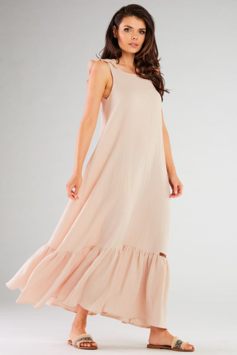 Long dress created for lovers of romantic and comfortable stylizations. The pattern widens towards the bottom, perfectly disguising minor imperfections of the body. Designed and sewn in Poland.