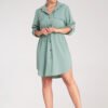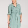 Shirt dress buttoned up with a classic collar and two chest pockets. Adjustable sleeves with the option to roll up. Waist tie emphasizing the silhouette.
