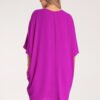 Loose, asymmetrical dress made of light, elastic material. The dress has wide sleeves and a decorative ring trimmed with fabric, creating a ruched effect. Ideal for people wearing sizes S, M, L, and XL.