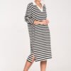 Knitted striped dress with a collar and long sleeves. One size fits all. The length of the dress is below the knee.