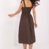 Light and girly, this summer dress is the perfect choice for warm, everyday days. Made of a breathable blend of viscose and nylon, it ensures comfort and delicate material draping. It has a flared cut that beautifully accentuates the waist and gives the silhouette a lightness. The tied straps allow for length adjustment, and the sweetheart neckline with subtle ruching adds a romantic charm to the whole. At the back, the dress is finished with elastic ruching with rubber bands that adjust to the silhouette, providing comfort and better fit. The lack of fastening makes the model easy to put on. The knee-length and smooth pattern make the dress versatile and ideal for a walk, shopping, and summer gatherings with friends.