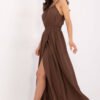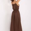 A summer maxi dress with spaghetti straps in a wrap style is a combination of comfort and subtle elegance for everyday wear. Made of lightweight, airy material blend of viscose and nylon, it provides wearing comfort even on hot days. The smooth fabric highlights the versatile character of the dress, and the round neckline gives it delicacy. The model does not have a fastening, it is put on over the head, with an additional tie at the back, which not only stabilizes the silhouette but also serves as an interesting, feminine detail. Ruching at the waist beautifully shapes the figure, adding lightness and airiness. Perfect for everyday walks, meetings, or summer outings.
