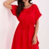 A summer viscose dress with a flared cut is a comfortable and stylish choice for everyday outings. Made of lightweight, breathable viscose, it ensures comfort even on hot days. The smooth fabric and knee-length give it a universal character, suitable for both walks and meetings with loved ones. The short sleeves and classic round neckline emphasize the simplicity and femininity of the model. An additional advantage is the tie at the waist, which allows you to emphasize the waist and give the silhouette lightness. This is the perfect summer dress – airy, practical, and always in style.