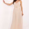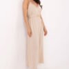 Summer maxi dress with straps is a stylish and comfortable option for everyday outings. Made of lightweight polyester, which lays nicely on the silhouette and is easy to care for. Smooth fabric emphasizes the elegance of the model, and the flared cut adds lightness and freedom. The V-neckline decorated with a delicate frill gives the dress a feminine charm and a romantic character. The model has no closure, it is put on over the head, which increases comfort. An additional advantage is the fastened belt, which allows you to emphasize the waist and give the silhouette the desired shape. Perfect for summer walks, meetings, or everyday activities.