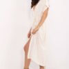 The summer boho shirt dress is a comfortable and stylish option for everyday wear. Made of natural, breathable cotton, it ensures comfort even on the warmest days. The oversized cut guarantees freedom of movement and a loose, effortless fit, while the smooth fabric gives the dress a versatile character. The midi-length model with short sleeves and a V-neck looks light and feminine. The button closure hidden under the placket adds an elegant finish to the whole look. Additional advantages are the inserted pockets and a belt with decorative fringes, which allows you to accentuate the waist and add a boho style to the outfit. Perfect for summer days, comfortable, stylish, and practical.