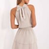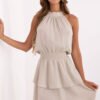 Light and airy dress perfect for summer days. Made of breathable, pleasant to the touch muslin cotton fabric, which ensures comfort even in the hottest weather. The flared model, with a length above the knee, beautifully emphasizes the feminine silhouette. Waist ruching with an inserted elastic gently shapes the waist, and the bottom with ruffles adds lightness and subtle charm. The dress has a round neckline and is sleeveless, making it perfect for everyday summer activities. The elegant tie at the back of the neck emphasizes the delicacy of the back and adds a romantic character to the whole. The universal, smooth pattern makes it an excellent base for everyday styling, just add flip-flops, a straw hat, and you’re ready for a beach walk or a lunch with a friend.