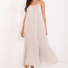 Light, airy and extremely comfortable dress made of delicate muslin cotton, perfect for warm summer days. Smooth material and flared cut create a stylish yet casual everyday look. Midi length model, with a round neckline and adjustable tied straps for a perfect fit. The bottom of the dress is finished with an elegant ruffle, adding lightness and girlish charm to the whole look. A perfect choice for daily outings, walks, vacations or meetings with friends. The natural fabric and loose fit will ensure full comfort even in the hottest weather. The length of the dress is given without the straps.