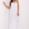 Light, airy and extremely comfortable dress made of delicate muslin cotton, perfect for warm, summer days. The smooth material and flared cut create a stylish yet casual option for everyday wear. A midi-length model with a round neckline and tied straps that allow for adjustment and fitting to the silhouette. The bottom of the dress is finished with an elegant flounce, adding lightness and girlish charm to the whole look. This is a perfect choice for everyday outings, walks, vacations or meetings with friends. The natural fabric and loose fit will provide you with full comfort even in the hottest weather. The length of the dress is given without the straps.
