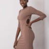 Casual pencil dress made of ribbed material is a stylish and comfortable option for everyday wear. Made of cotton with added elastane, it adjusts to the silhouette, ensuring comfort. A mini length model with a round neckline and 3/4 sleeves emphasizes the feminine figure and gives the whole a modern character. The smooth pattern is complemented by striking cuts on the sides with decorative lacing, adding originality to the dress. Perfect for sneakers, boots, or flip-flops for any everyday occasion.