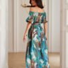 Dress Mia is the essence of summer style and feminine charm, created for lovers of natural materials, comfort, and romantic accents. It will work perfectly for both everyday wear and more special occasions. Made of 100% lightweight, breathable viscose, it guarantees comfort even in the hottest weather. The material softly drapes over the silhouette, does not restrict movement, and allows the skin to breathe freely. Thanks to this, the dress combines functionality with subtle elegance and looks exceptionally noble. One of the most characteristic elements of this model is the Spanish neckline, which sensually reveals the shoulders and beautifully accentuates the neckline and collarbones. Short sleeves delicately complement the top of the dress, creating a cohesive and comfortable whole. The floor-length adds elegance to the styling, and the high slit in the skirt adds lightness and notes of feminine charm, optically lengthening the legs. There is a fabric belt at the waist, which allows for adjusting the circumference and subtly shaping the silhouette, regardless of body type. Each piece has been designed and sewn in Poland, with attention to detail and quality of workmanship.