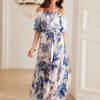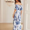 The Mia dress is the essence of summer style and feminine charm, created with natural materials lovers, comfort and romantic accents in mind. It will be perfect for both everyday wear and more special occasions. Made from 100% lightweight, breathable viscose, it guarantees comfort even in the hottest weather. The material softly drapes on the silhouette, does not restrict movement, and allows the skin to breathe freely. Thanks to this, the dress combines functionality with subtle elegance and looks exceptionally noble. One of the most characteristic elements of this model is the Spanish neckline, which sensually reveals the shoulders and beautifully highlights the neckline and collarbones. Short sleeves gently complement the top of the dress, creating a harmonious and comfortable whole. The floor-length adds elegance to the styling, and the high slit in the skirt adds lightness and notes of feminine charm, visually elongating the legs. There is a fabric belt at the waist, allowing for adjustment of the circumference and subtle shaping of the silhouette, regardless of the body type. Each piece has been designed and sewn in Poland, with attention to detail and quality of workmanship.