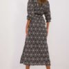 A simple cocktail dress in midi length, made of natural cotton with a lace, embroidered pattern, combines elegance with subtle charm. The model with 3/4 sleeves, finished with a delicate ruffle, and a tie at the neckline gives the whole a romantic character. The dress has a lining, which ensures comfort when wearing, and the tie belt accentuates the waist. An additional accent is the slit at the bottom on the left side, which adds lightness and feminine charm. The lack of fastening makes it comfortable to put on. Excellent for both work and formal occasions.