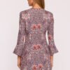 The unique dress made of fabric with a colorful plant print is a proposal that combines feminine grace with a hint of retro style. The matte finish of the material adds elegance and subtlety, while the decorative floral pattern attracts attention and enlivens the outfit. The model has a V-neckline, which beautifully elongates the neck and adds lightness. The 7/8 length sleeves are finished with a delicate flare, giving the whole outfit a flowing and slightly romantic character. The dress is fastened at the back with a concealed zipper, which ensures comfort and a neat finish. The simple, slightly tailored cut is designed to gently accentuate the silhouette while remaining loose towards the bottom. The mini length gives the outfit a youthful character and makes the dress perfect for both everyday wear and more special occasions. Designed and made in Poland for women who appreciate style, comfort, and original details.