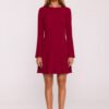 A classic dress made of smooth fabric with a matte finish is a proposal that combines simplicity and elegance in a modern version. The minimalist design makes it perfect for both everyday stylizations and more formal occasions. The model has a subtle boat neckline and long sleeves, giving the whole a timeless character. The dress is fastened with a concealed zipper at the back, ensuring comfort and aesthetic finish. The slightly fitted top is complemented by bottom pleats, adding lightness and feminine charm to the silhouette. The simple, tailored line subtly accentuates the figure, and the mini length gives the dress a modern, girlish character. Designed and made in Poland, created for women who appreciate timeless elegance in a minimalist form.