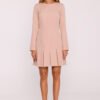A classic dress made of smooth fabric with a matte finish is a proposal that combines simplicity and elegance in a modern edition. The minimalist design makes it perfect for both everyday styling and more formal occasions. The model has a subtle boat neckline and long sleeves, giving the whole a timeless character. The dress is fastened with a concealed zipper at the back, which ensures comfort and aesthetic finish. The slightly fitted top is complemented by bottom pleats, adding lightness and feminine charm to the silhouette. The simple, tailored line subtly accentuates the figure, while the mini length gives the dress a modern, girlish character. Designed and made in Poland, created for women who appreciate timeless elegance in a minimalist form.